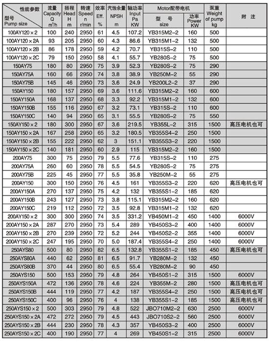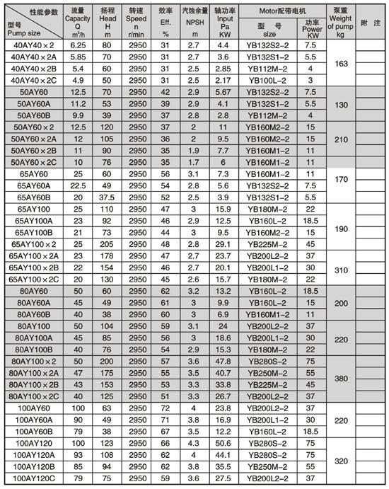 ·應(yīng)用 適用于輸送高溫高壓以及易燃易爆有毒的液體,廣泛用于石油精制、石油化工和化學(xué)工業(yè)及其他地方輸送不含固體顆粒的其他介質(zhì)。 ·設(shè)計(jì)特點(diǎn) 可分為單級(jí)單吸和兩級(jí)單吸懸臂式、單級(jí)雙吸懸臂式、單級(jí)雙吸和兩級(jí)雙吸兩支撐式、兩級(jí)單吸兩支撐式等六種。軸承有空氣冷、風(fēng)扇冷和水冷三種,根據(jù)泵的不同使用溫度來(lái)選用。其中風(fēng)扇冷尤為適用缺水或水質(zhì)差的地區(qū),安裝方式為水平中心線支撐。 ·軸密封 軟填料密封及各種滑環(huán)機(jī)械密封。 ·材料 鑄鐵、合金鋼及各種不銹合金鋼。 ·性能范圍 流量:2.5-600m3/h 揚(yáng)程:30-330m 工作溫度:-45-420℃ ·性能參數(shù)表 |