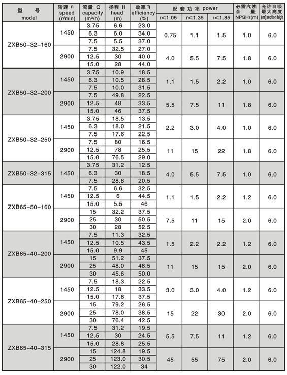 ·應用ZXB無堵塞臥式自吸離心泵廣泛適用于石油行業(yè)、油庫、油罐車等并適用于消防和壓載泵及機器冷卻水循環(huán)等,可輸送汽油、煤油、柴油等石油產(chǎn)品。·設計特點ZXB無堵塞臥式自吸離心泵屬于單級單吸懸臂式離心泵,引用真空泵抽氣原理,開機時抽掉進口管道空氣,達到自吸的目的。·設計選擇密封葉輪或開式葉輪。·軸密封軟填料密封及各種滑環(huán)機械密封。·材料各種不銹合金鋼。·性能范圍 流量:4-460m3/h 揚程:5.5~130m 轉(zhuǎn)速:1450、2900r/min 工作溫度:-20~80℃ ·性能參數(shù)表